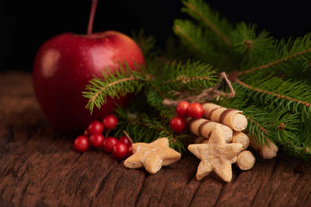 Christmas Holiday Eating Concept. apple and cooking on the wooden background.