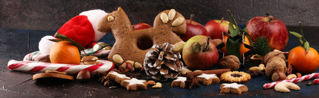 Beautiful composition of Christmas cooking of traditional holiday sweets