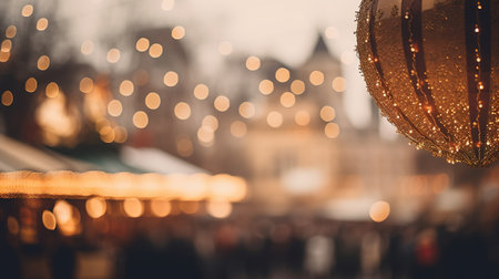 Generative AI, Christmas fair blurred background, winter street market in Europe