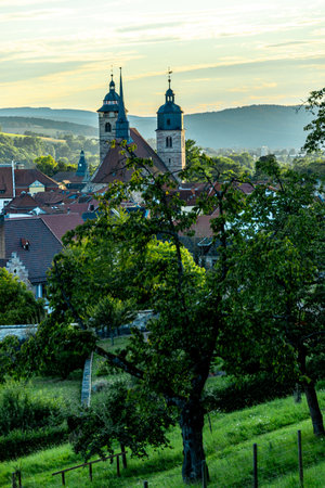 Traditional Historical Buildings in the Village of Untermerzbach in Germany. Warm September Morning. Lovely Towers and Historic Buildings