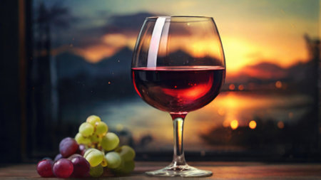 A glass of a wine is sitting on top of the table, AI