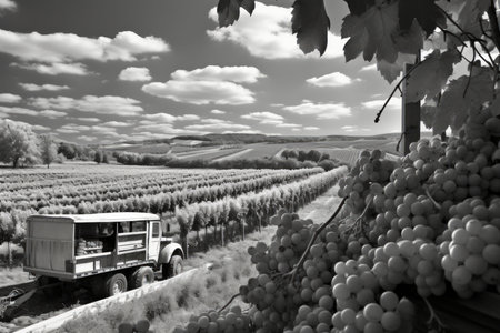 Amid harvest bounty viticulturist with grape crates culmination of diligent year's labor