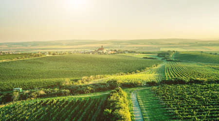 Nice sunset on vineyard at Palava Czech republic