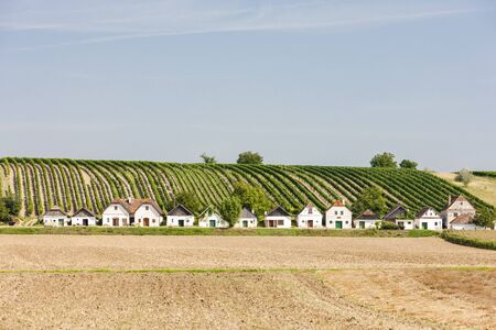 Traditional wine cellars with vineyard in Galgenberg near Wildendurnbach, Lower Austria, Austria