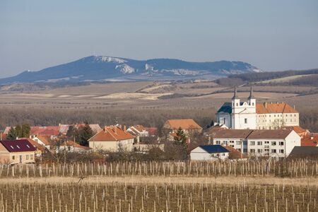 Winter landscape in South Moravia in the Czech Republic in Europe. Vineyards after winter in Palava.