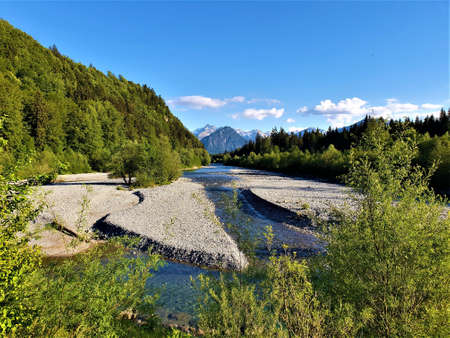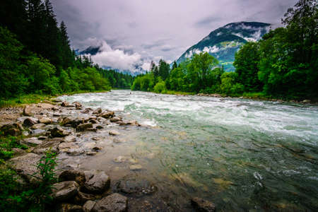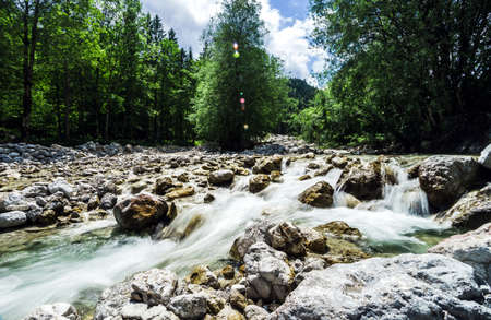 Mountain river in the Alps in summer