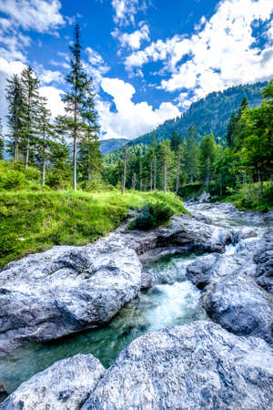 Ramsauer Ache torrent is the outlet of the Hintersee near Ramsau in the Berchtesgadener Land National Park