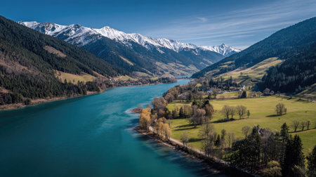 Generative AI : Aerial view of river Lech near Schongau in Bavaria Germany