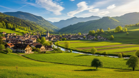 Beautiful old town surrounded by mountains view. Generative AI