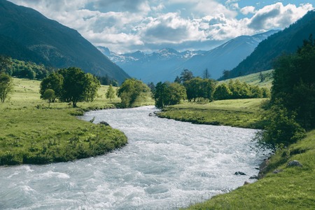 Mountain river in the valley. Mountain landscape with a river.