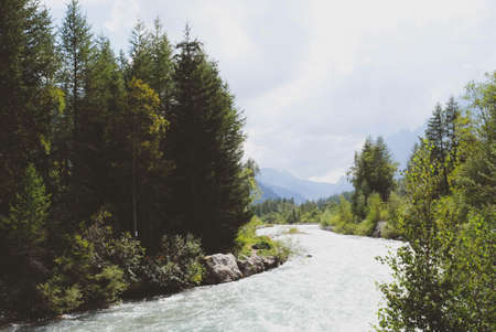 Panoramic view of the river in the Dolomites, Italy