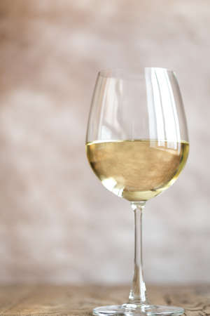 Refreshing White Wine in a Glass on a Background.