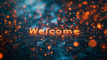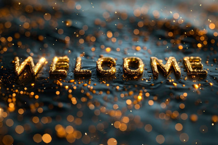 Glittering letters spell out welcome against a backdrop of shimmering bokeh lights, evoking a festive and inviting ambiance for visitors at a memorable gathering..