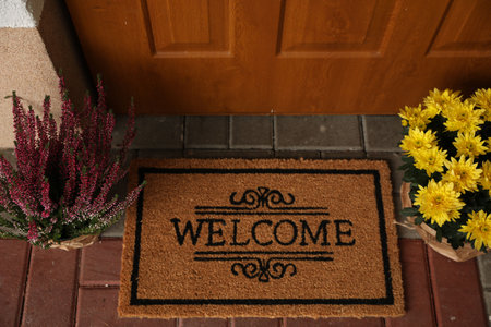 A warm 'Welcome Home' mat greets at the entrance of a house, symbolizing a new chapter in residential living