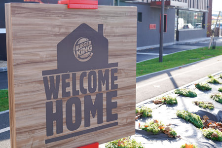 Bordeaux , Aquitaine / France - 12 04 2019 : Burger King welcome wood panel Restaurant Exterior sign logo fast food store