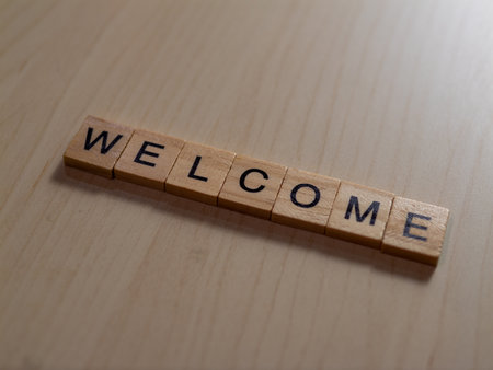 Word welcome on wooden cubes