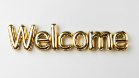 A sparkling welcome display made of golden letters on a reflective surface. The shimmering background enhances the cheerful ambiance, perfect for celebrations and gatherings..