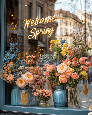 Spring Sale 50% Promotion and Marketing with easel with flowers bouquet decoration
