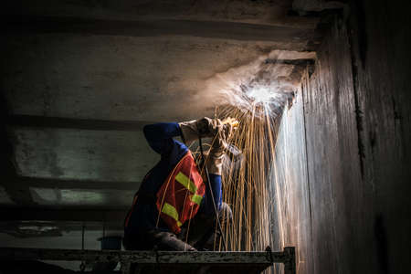 welder, craftsman, erecting technical steel Industrial steel welder in factory technical,