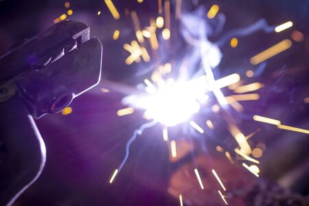 Close-up of the sparking light of the welding process.Sparking light from the welding process.