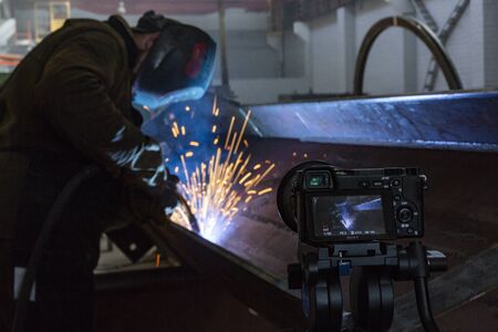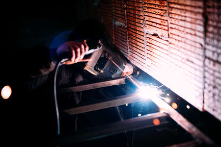 Welding of metal structures by semi-automatic arc welding. MIG welding. high quality photo