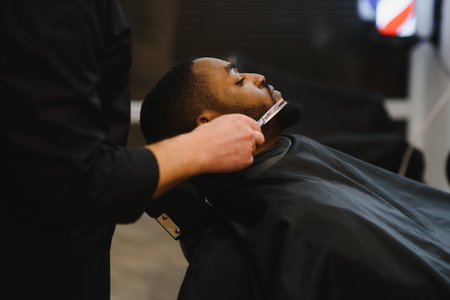Young African-american man visiting barbershop