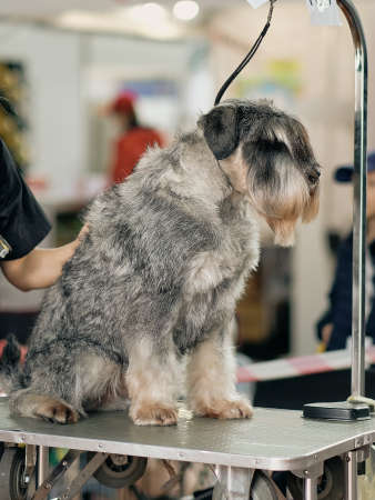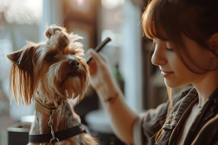 Dog care, grooming Yorkshire Terrier at the Zoo