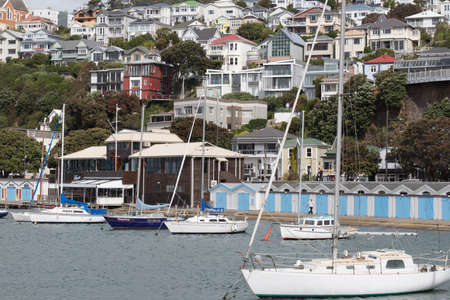 New Zealand, Wellington - January 11 2020: the view of Lambton Harbour, Oriental Bay, Clyde Quay Marina boat harbour on January 11 2020 in Wellington, New Zealand.