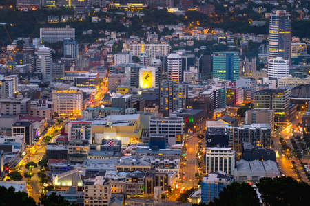 2018, JAN 1 - Wellington, New Zealand, The panorama landscape view of the building and scenery of the city at sunset.