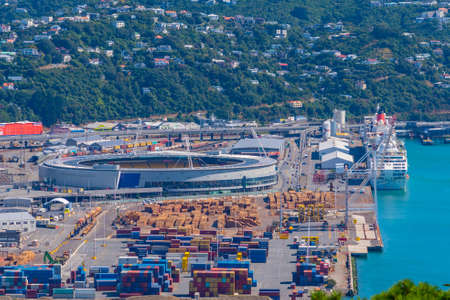 Sky stadium at the container port in Wellington, New Zealand