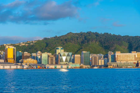 Wellington, New Zealand - city skyline. Modern architecture. The view from Wellington Harbor