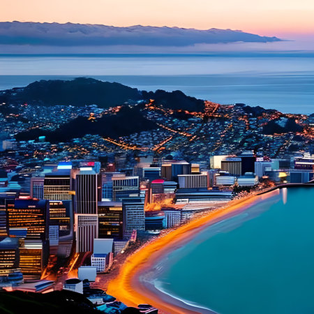 Sunset aerial view of Wellington, New Zealand