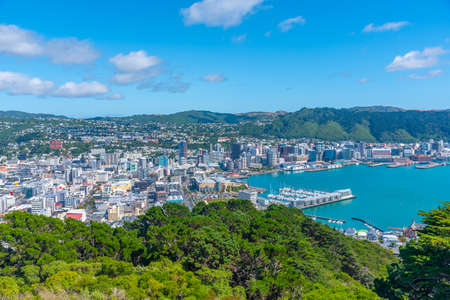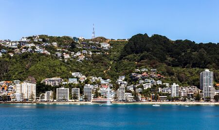 View over historical suburb of Mount Victoria across Wellington Harbour on a bright sunny day. Wellington, New Zealand