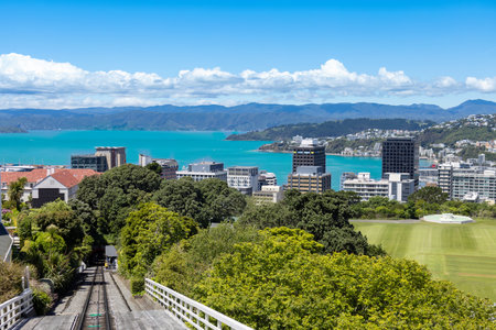 Scenery from the Kelburn Observatory of the cable car in Wellington, New Zealand