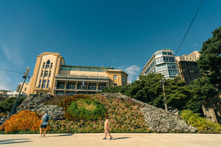 Wellington, New Zealand - September 10, 2022: People enjoying the sunny day at Oriental Bay Beach in Wellington, New Zealand