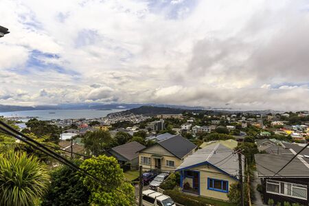 Wellington, New Zealand - February 08, 2023: Panoramic view of houses from Brooklyn suburb in Wellington, New Zealand