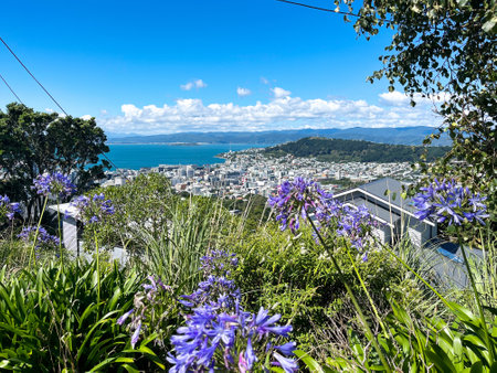 WELLINGTON, NEW ZEALAND, FEBRUARY 9, 2020: Skyline of Wellington from Wellington botanic gardens, New Zealand