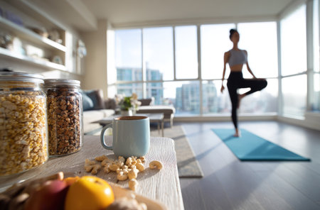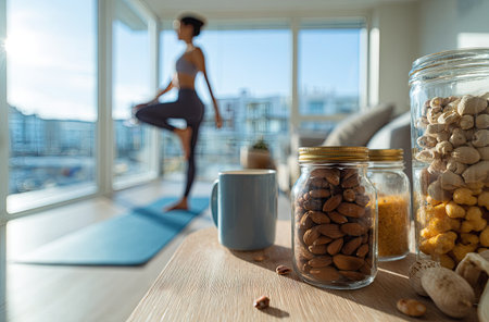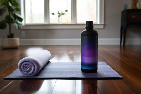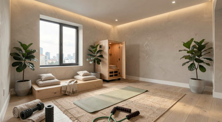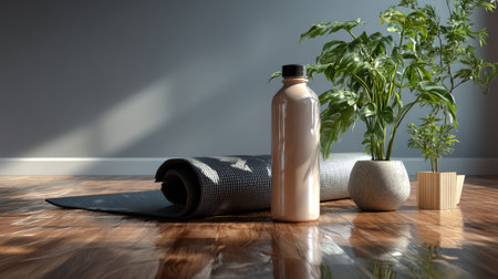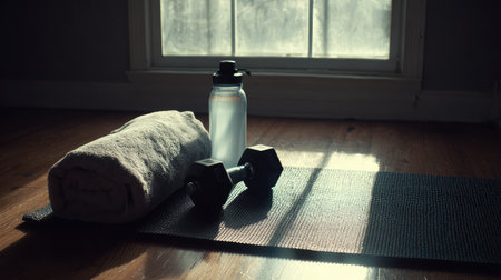 Minimal Home Yoga Corner With Dumbbells And Bottle 021125