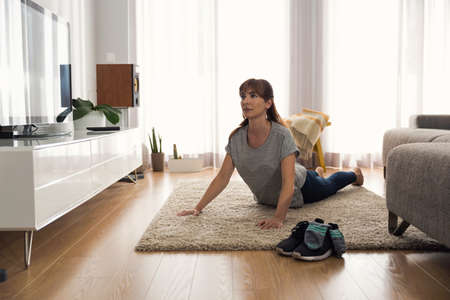 woman doing stretching at home