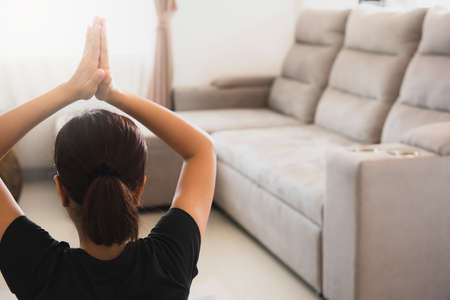 Woman do yoga relax indoor. Woman exercising pose vital and meditation for fitness lifestyle. Healthy and Yoga Concept
