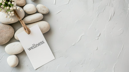 wellness paper tag with zen stones healthy lifestyle concept