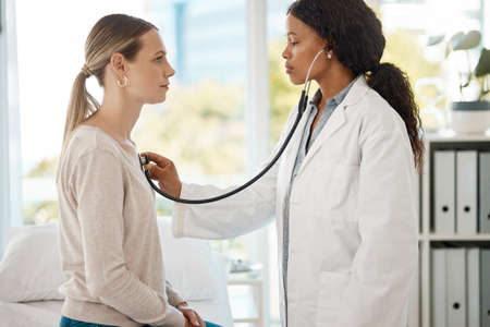 Doctor examining female patient with stethoscope in the hospital.healthcare and medicine