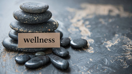 wellness paper tag with zen stones healthy lifestyle concept