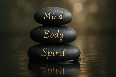 Mind, Body and Spirit on zen stones. Balanced Zen Stones Promoting Focus, Clarity, and Inner Strength.