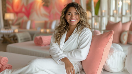A woman is seen enjoying a moment of relaxation in a luxurious spa chair, surrounded by a serene and elegant environment.
