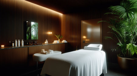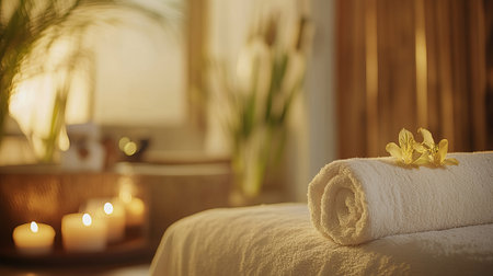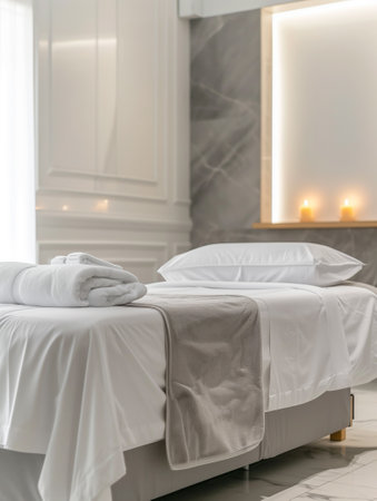 Experience the ultimate relaxation in a luxurious spa treatment setting. Enjoy a serene ambiance filled with candles, elegant decor, and plush towels, creating a tranquil escape for self-care and rejuvenation.
