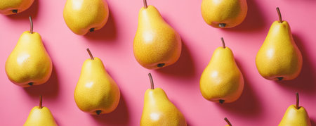 Yellow pears pattern on pink background, vibrant and fresh still life. Summery fruit concept