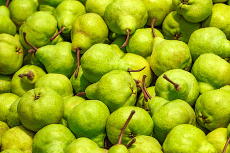 Green pears at a fruits market