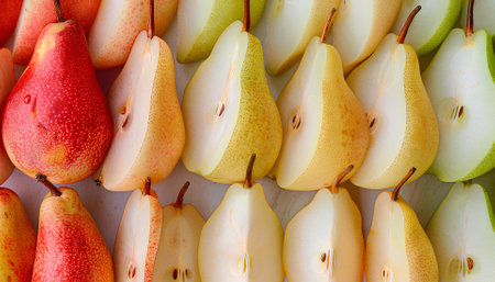 AI Generated. a couple of pears with a slice cut in half