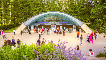 London, UK - 18 June, 2025: Lots of people walking in Greenwich square at sunset.